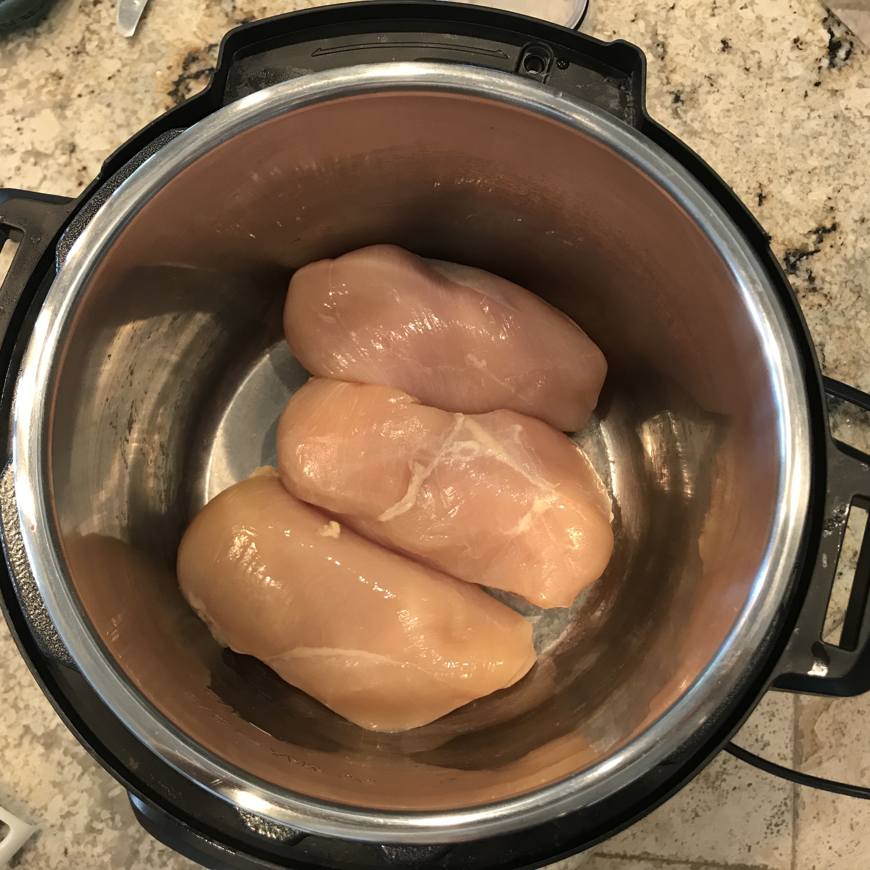 That’s it. Cook in a slow cooker 6ish hours on low (high if your chicken is frozen). If you’re using an Instant Pot, cook on high pressure for 22 minutes.